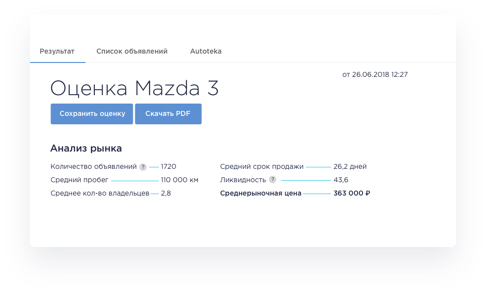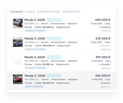 Сервис помогает оперативно анализировать рынок, гибко формировать выборку из аналогичных автомобилей с крупнейших сайтов объявлений и учитывать в оценке особенности выкупаемого авто.